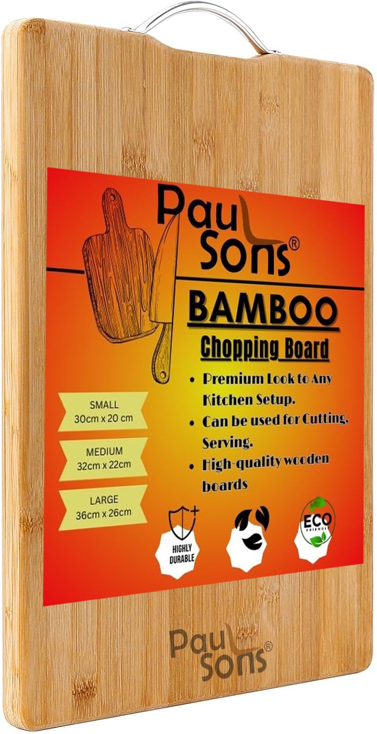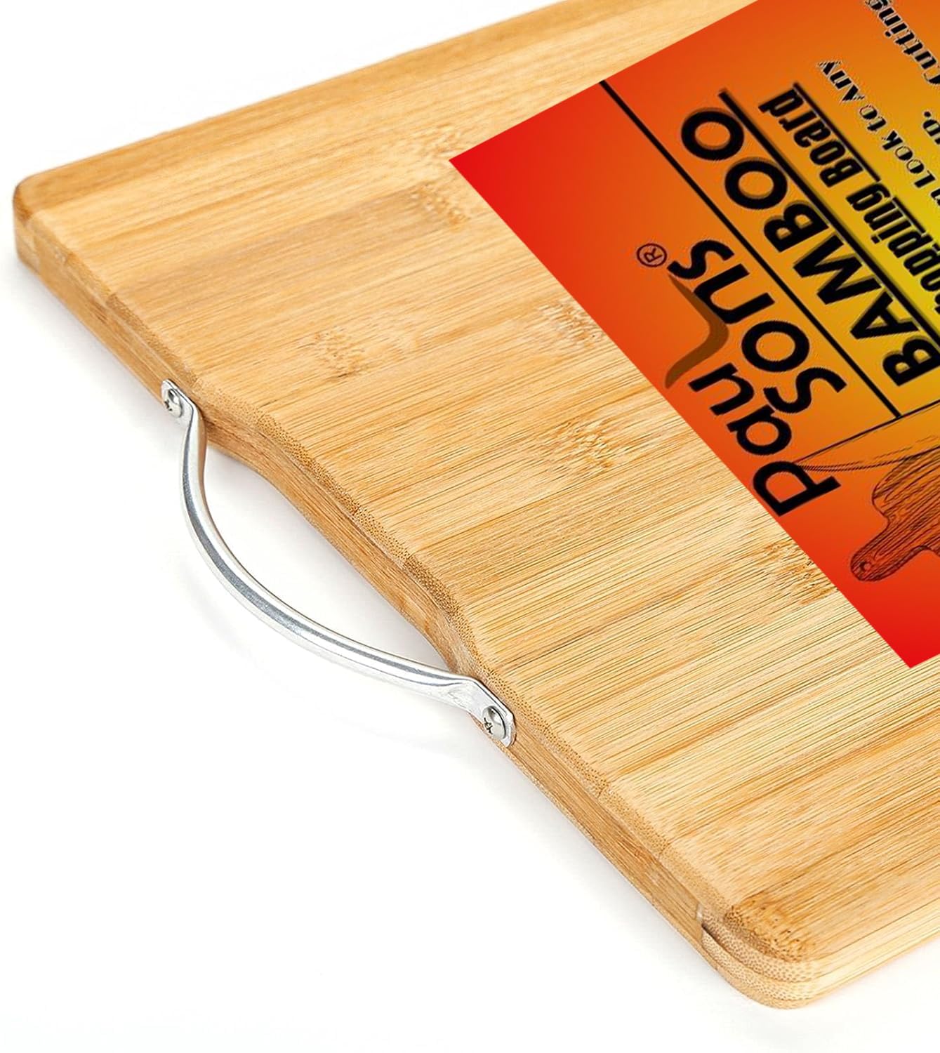 RAYCRAFT WORLD Eco-Friendly Bamboo Cutting Board, Durable Stainless Steel Handle for Convenient Hanging, It's Perfect for Everyday Kitchen (STEELHAND-CHOPPING)