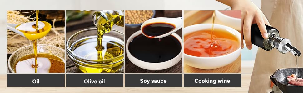 - Healthier food: food grade stainless steel and silicone seals on the mouth prevent oxidation of olive oil, and a unique anti-drip nozzle keeps the olive oil fresh. With a curved mouth design that won't drip, spill or accidentally run. Designed to keep dust or insects from falling into the bottle when not in use.