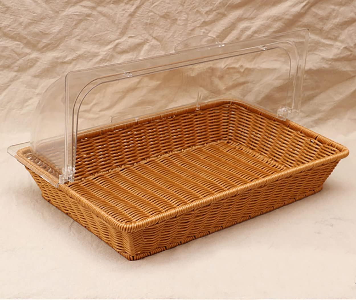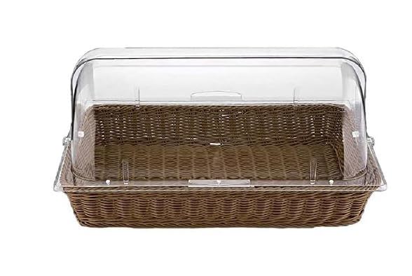 RAYCRAFT WORLD Commercial Professional Restaurant Cafe Self Serve Bread Basket/Pastry Donut/Cookie Display Wicker Basket Case Countertop Rectangle with lid 21x13x3 (Pack of 1Pc)
