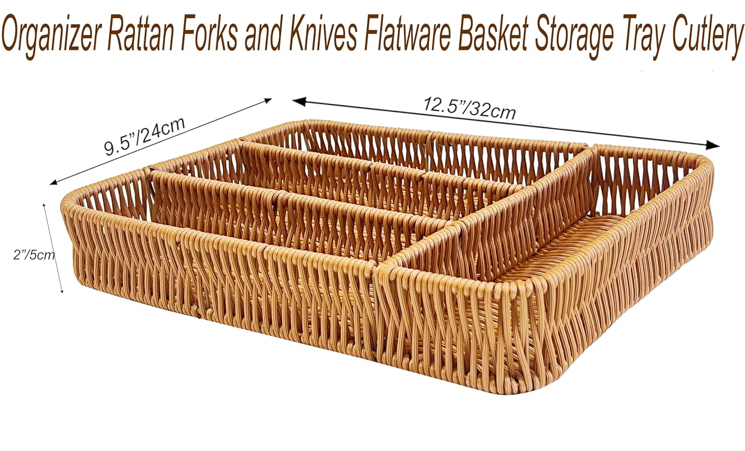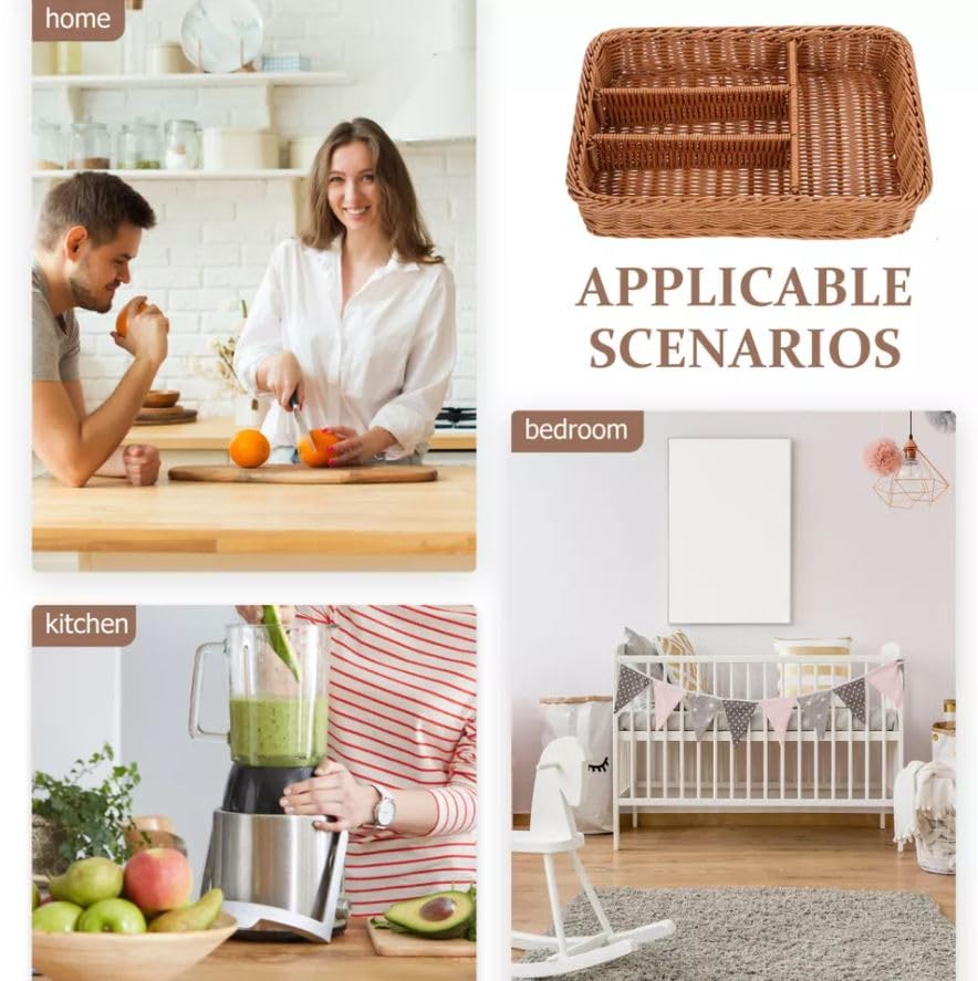 RAYCRAFT WORLD Organizer Rattan Partition Basket For Forks and Knives Flatware Basket Storage Tray Cutlery Size: 12.5"L x 9.5"B x 2"H