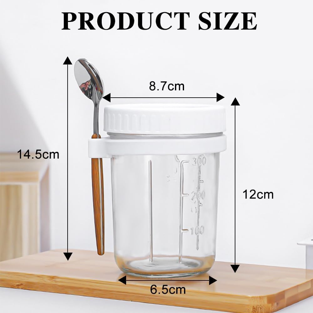 RAYCRAFT WORLD Overnight Oats Mason Jar with Spoon, Glass Container with Lid, Portable Breakfast Storage 350ML