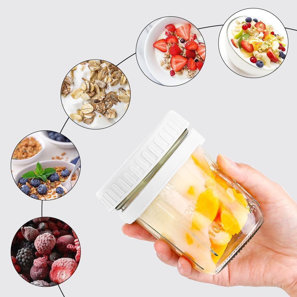 - CAPACITY: 350ML glass mason jar perfect for preparing and storing overnight oats, smoothies, and other breakfast items