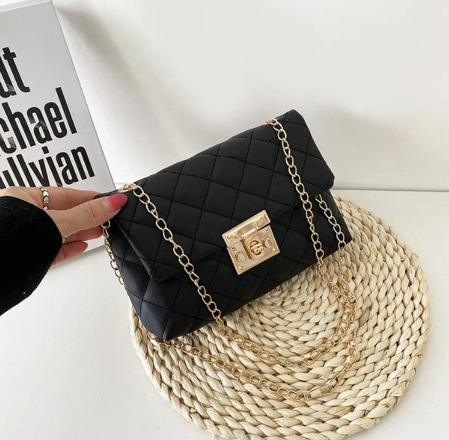 RAYCRAFT WORLD Quilted Crossbody Handbag with Gold Chain Strap, Faux Leather, suitable for both casual outings and formal occasions with timeless appeal, Metal Lock Closure