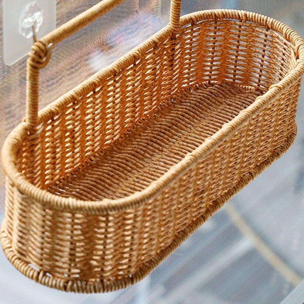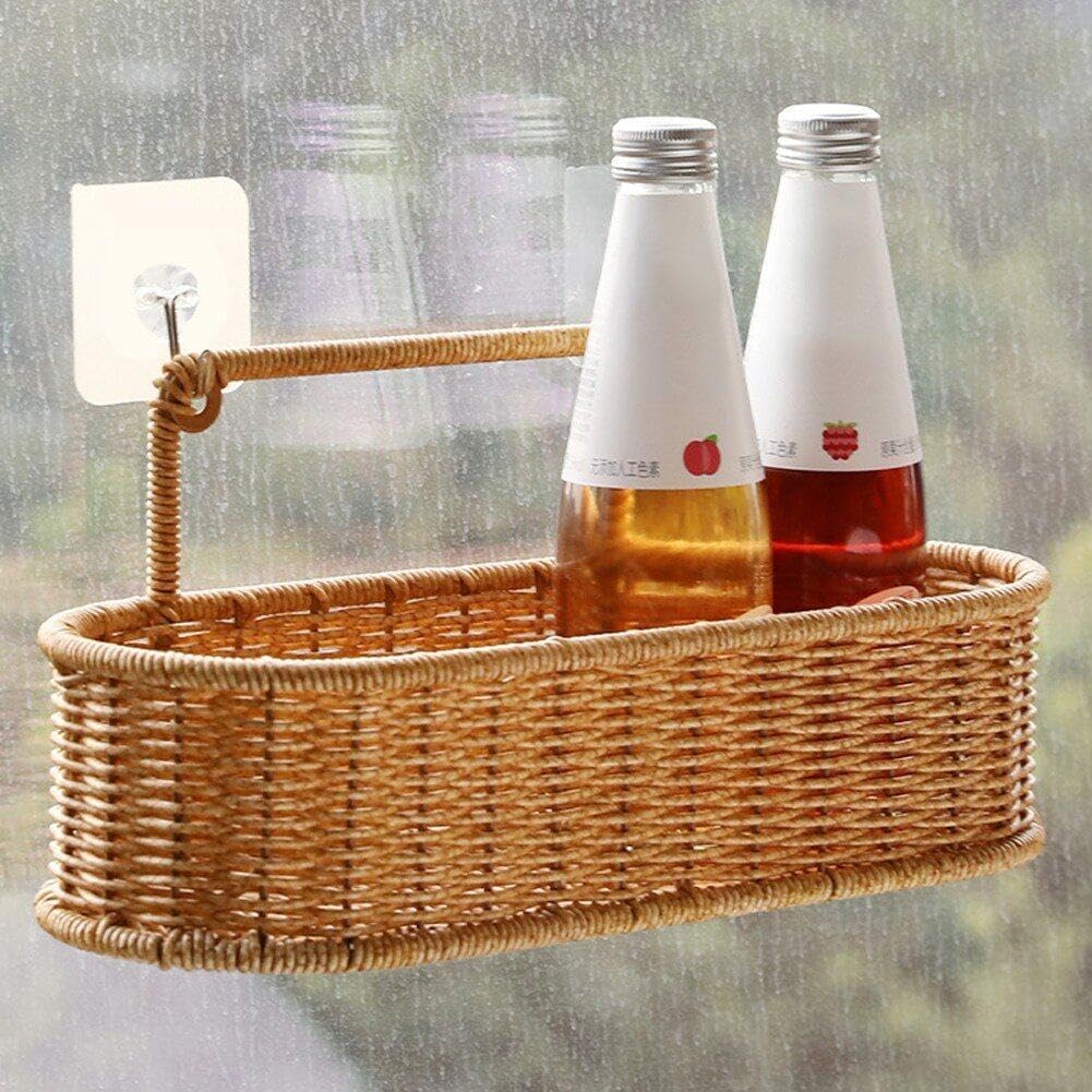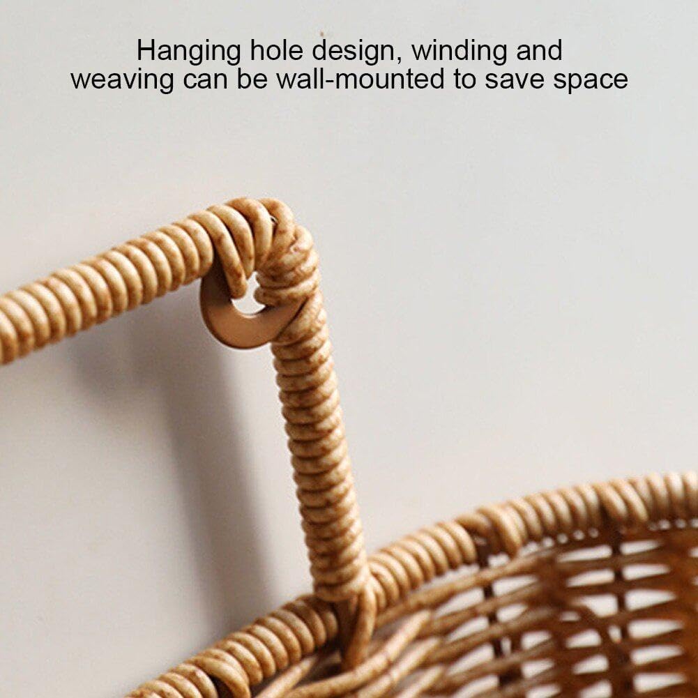 RAYCRAFT WORLD Rattan Wall Hanging Basket, Wall Mounted Rattan Storage Basket for Kitchen, Bathroom, Wicker Organizer for Onions, Potatoes, Eggs, Garlic