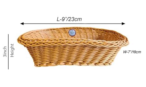 RAYCRAFT WORLD Rectangle Wicker Basket Rattan Woven Bread Baskets Poly Wicker Fruit Baskets, Brown Small Size: 9"x 7"x 3"