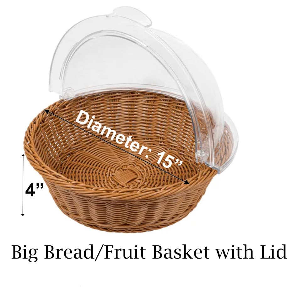 RAYCRAFT WORLD Round Bread Basket Fruit Basket with Transparent Dome Lid Basket for Restaurant/Home/Hotel Round Food Storage Basket Cake Stand Dome15 x4