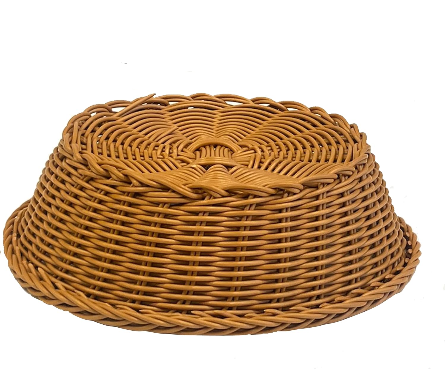 RAYCRAFT WORLD Round Woven Plastic Cane Basket for Fruit Vegetable Serving Basket Snack Basket Egg Storage Basket/Bread Basket Dia:-10Inch