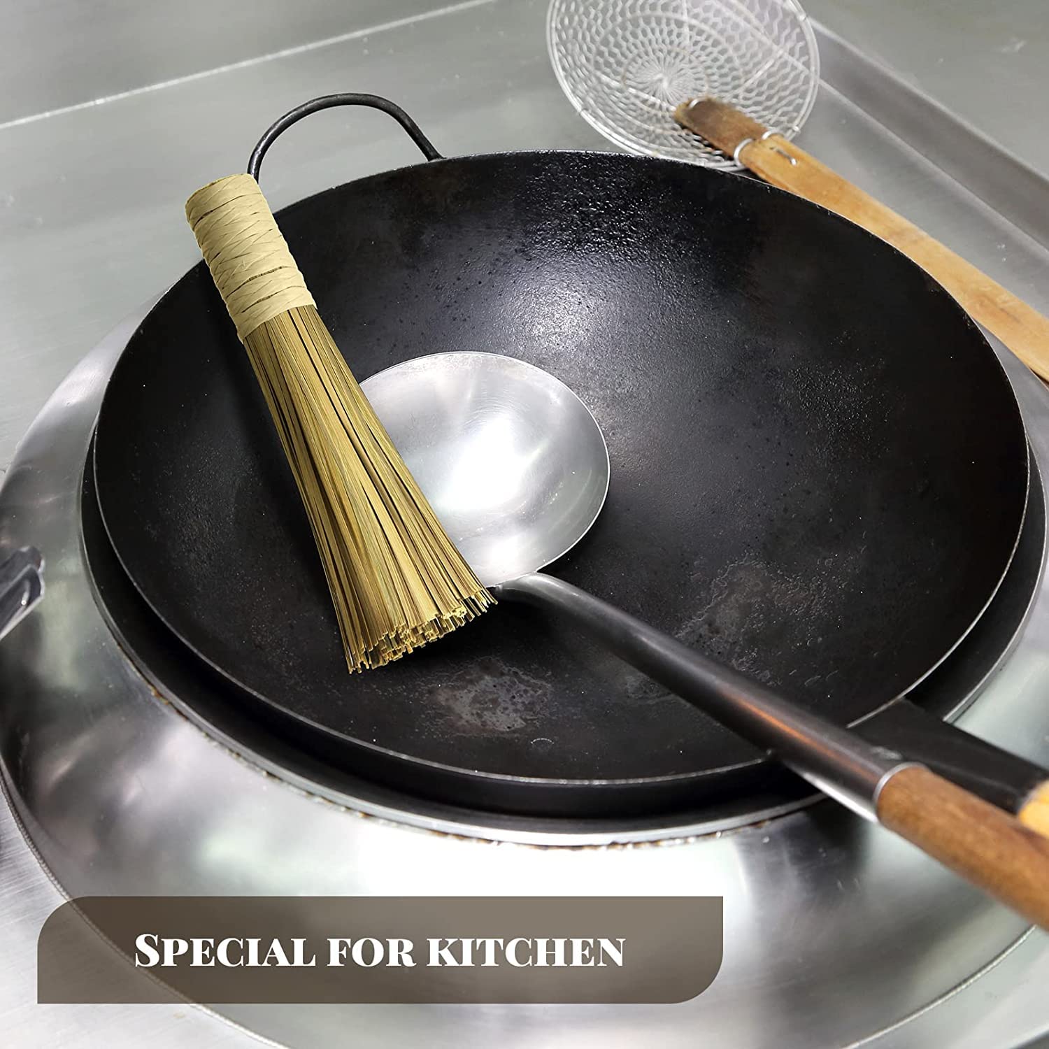 RAYCRAFT WORLD Wok Cleaning Brush/Whisk Bamboo Scrub Brush Kitchen Cleaning Pot Scrubber Dish Pan Brush for Cooking Skillet Grill Utensils Scrubbing Cleaning