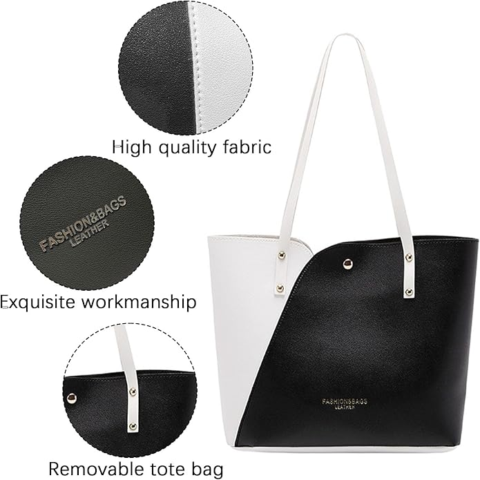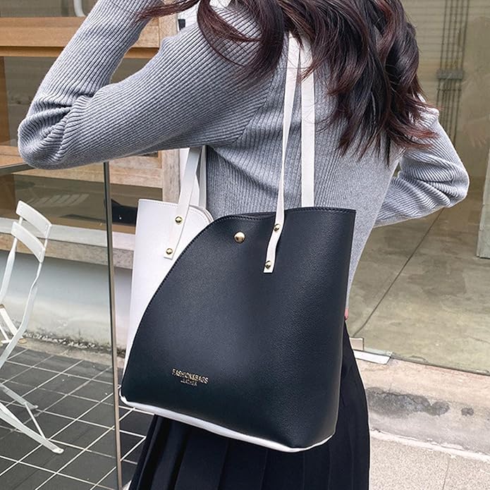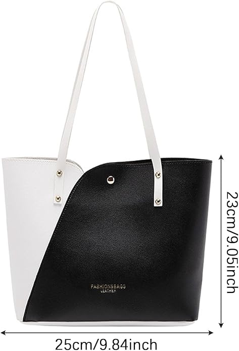 Make a bold style statement with this sophisticated two-tone leather tote handbag. The striking black and white colour blocking creates a modern, versatile aesthetic that complements any outfit. This lightweight shoulder bag features durable construction with quality leather material and sturdy white straps secured by metallic rivets. The spacious main compartment offers ample room for your daily essentials, making it perfect for office use, shopping trips, or casual outings. The clean lines and contemporary design showcase the FASHIONSEAO branding, adding a touch of elegance. The contrasting colours and minimalist silhouette ensure this handbag transitions seamlessly from day to evening wear. Its practical size and classic design make it an ideal choice for the fashion-conscious woman who values both style and functionality in her accessories