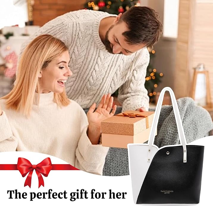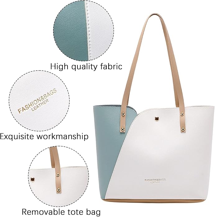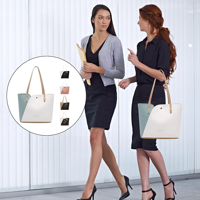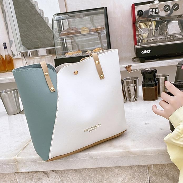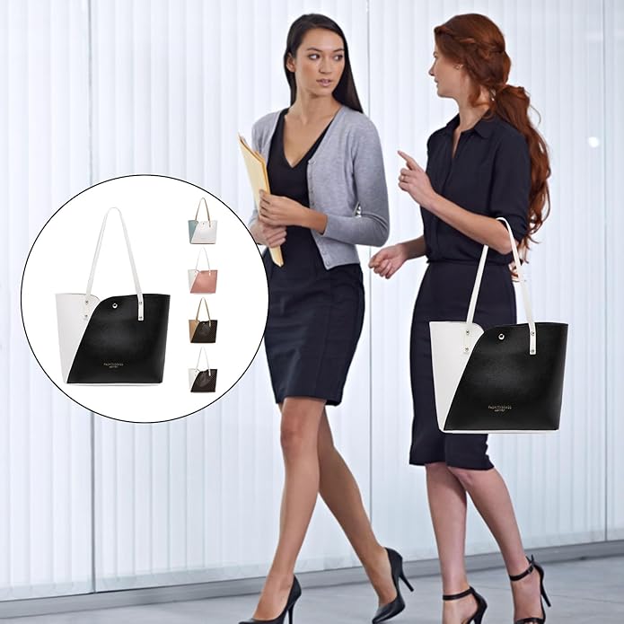 RAYCRAFT WORLD Women's Fashion Shoulder Bag Two-Tone Leather Tote Handbag,&nabs; Lightweight and versatile for casual outings, office, or shopping trips
